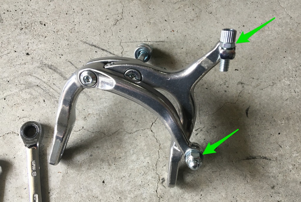 台湾ブロンプトンのブレーキはもともとシングルピボットのキャリパーブレーキが装着されています。お世辞にも「効きが良い」とは言えないので、ダブルピボットのブレーキに交換します。