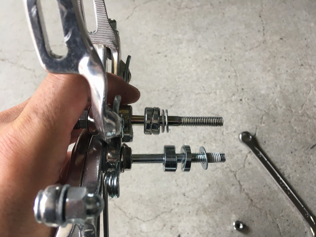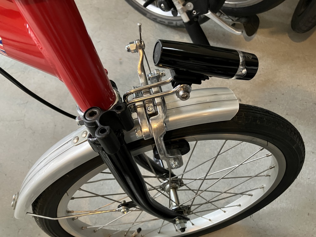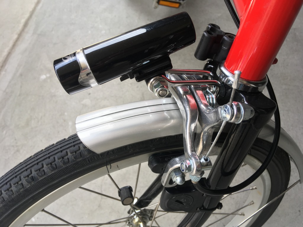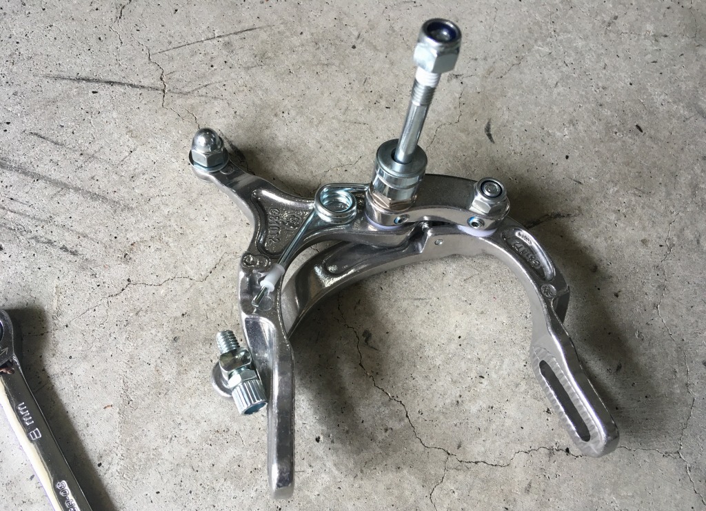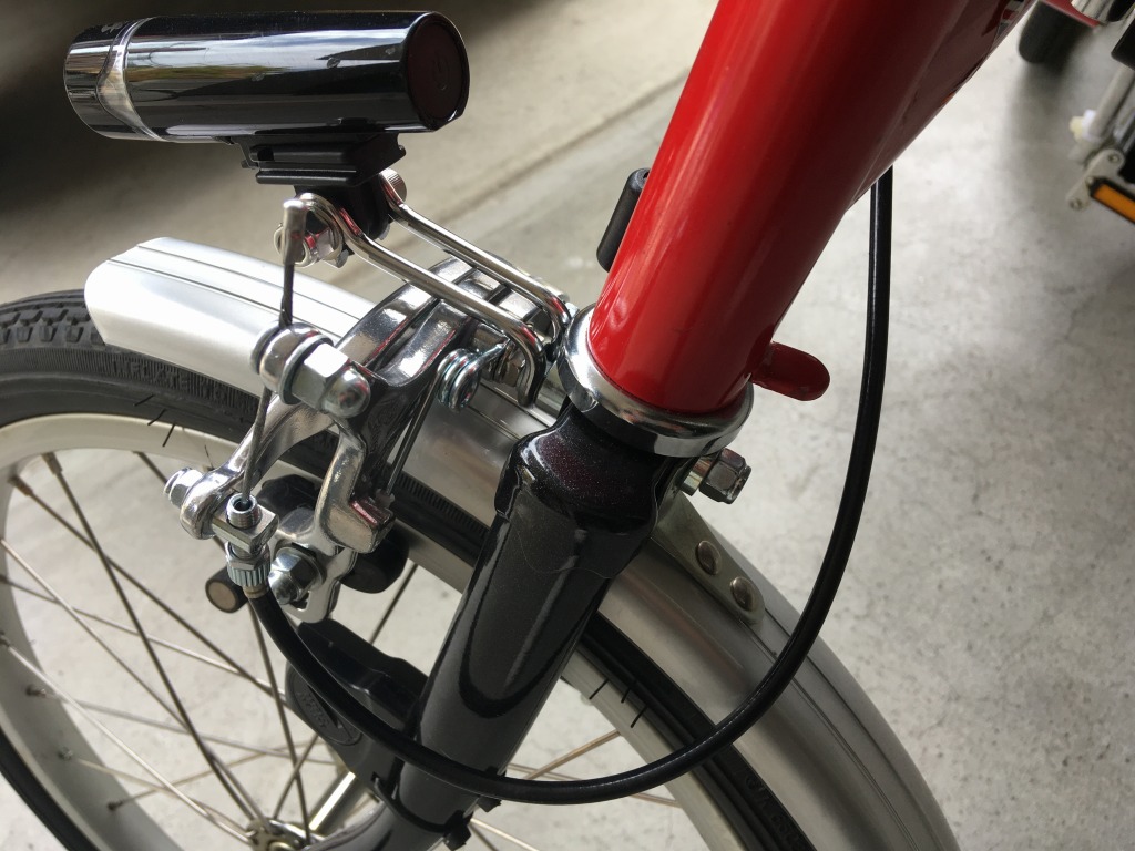 台湾ブロンプトンです。シングルピボットのブレーキアーチが付いているのですが、悲しいくらい効かないです。ダブルピボットのブレーキに変えればだいぶマシになるようなので、まずは前ブレーキを交換します。