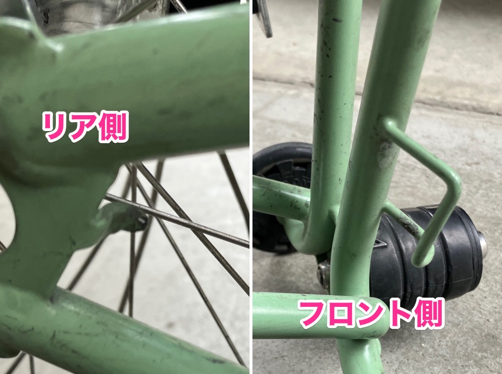 英ブロのホルダー部分の両端を見ると、リア側は突起、フロント側はインフレーターの形状に合わせた枠になっています。