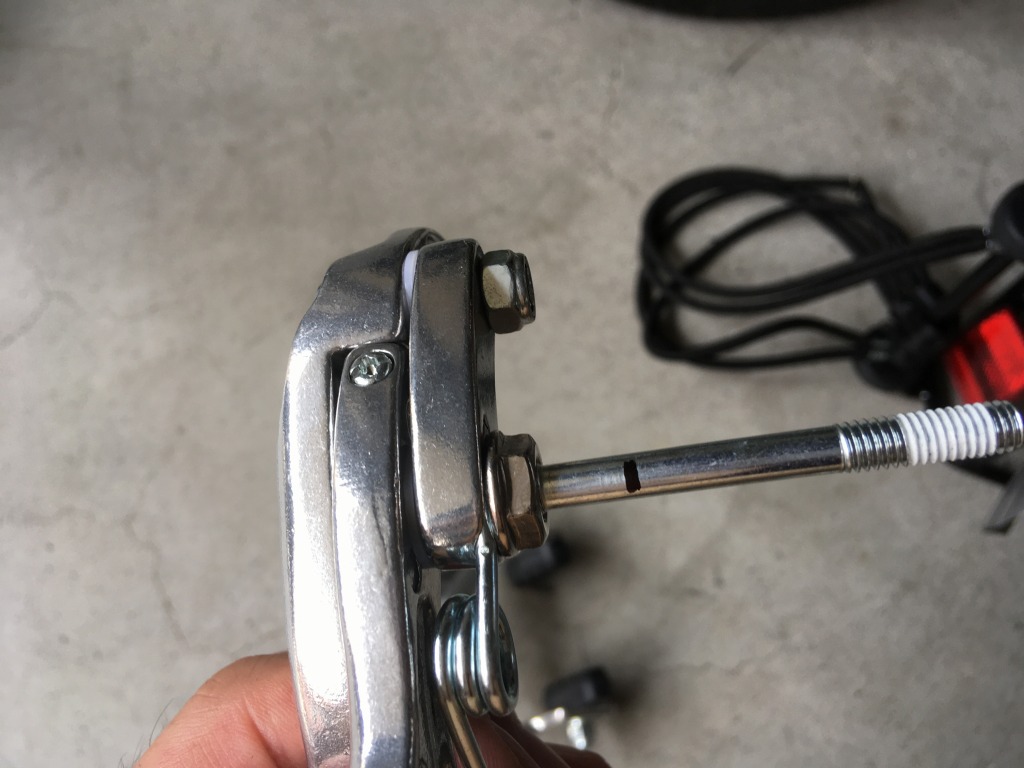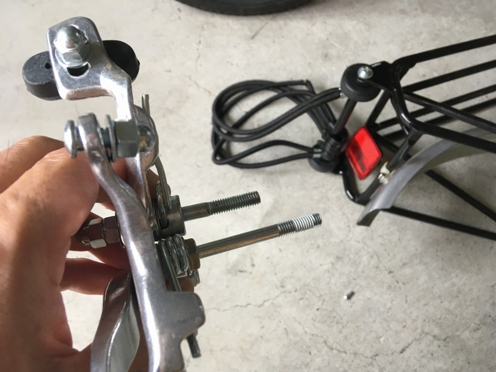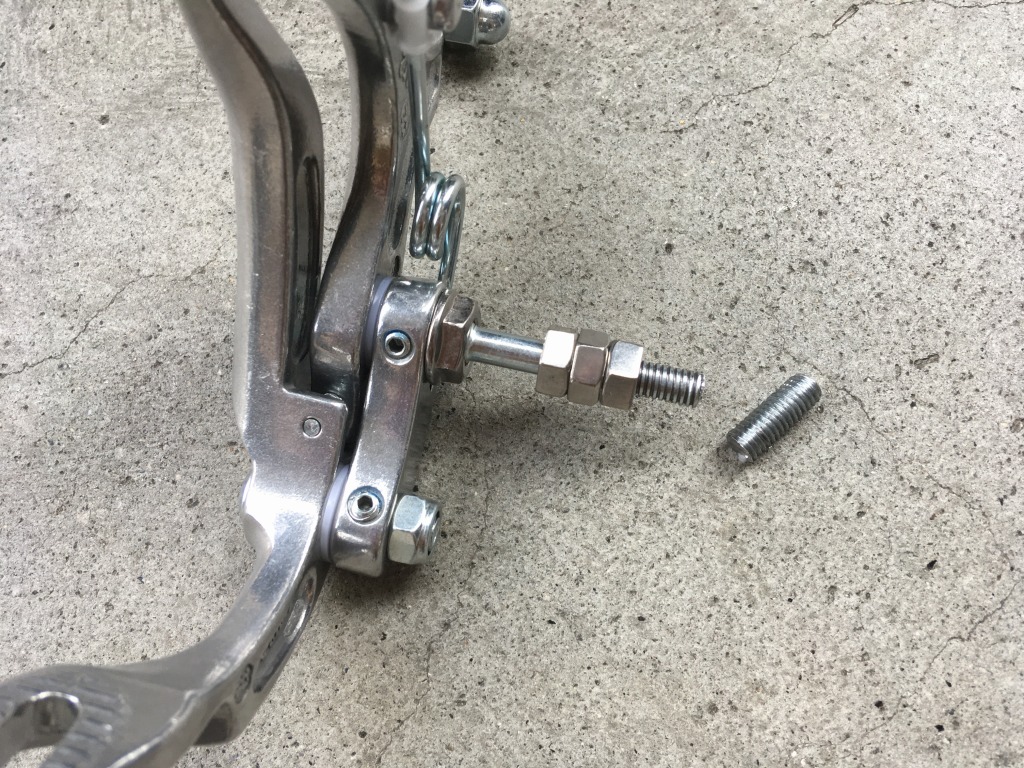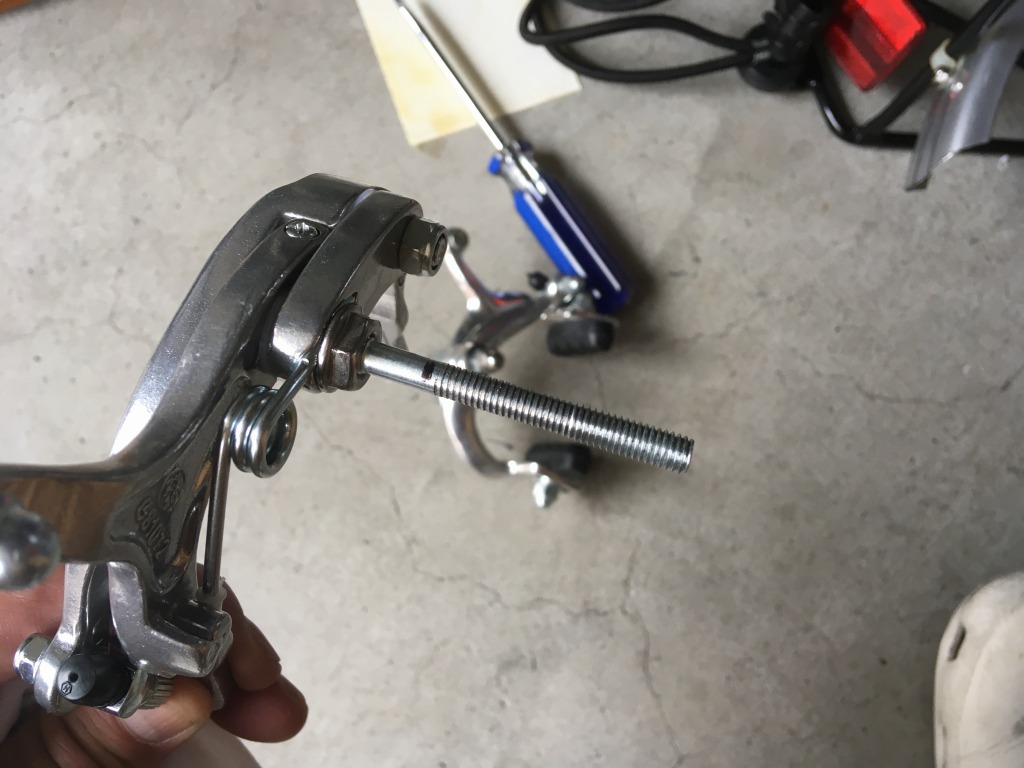 台湾ブロンプトンはブレーキが効かないという噂のとおり、危険なくらい止まりません。ダブルピボットのブレーキに交換します。前ブレーキの交換の次は後ブレーキの交換です。