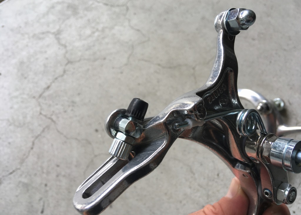 台湾ブロンプトンのブレーキはもともとシングルピボットのキャリパーブレーキが装着されています。お世辞にも「効きが良い」とは言えないので、ダブルピボットのブレーキに交換します。